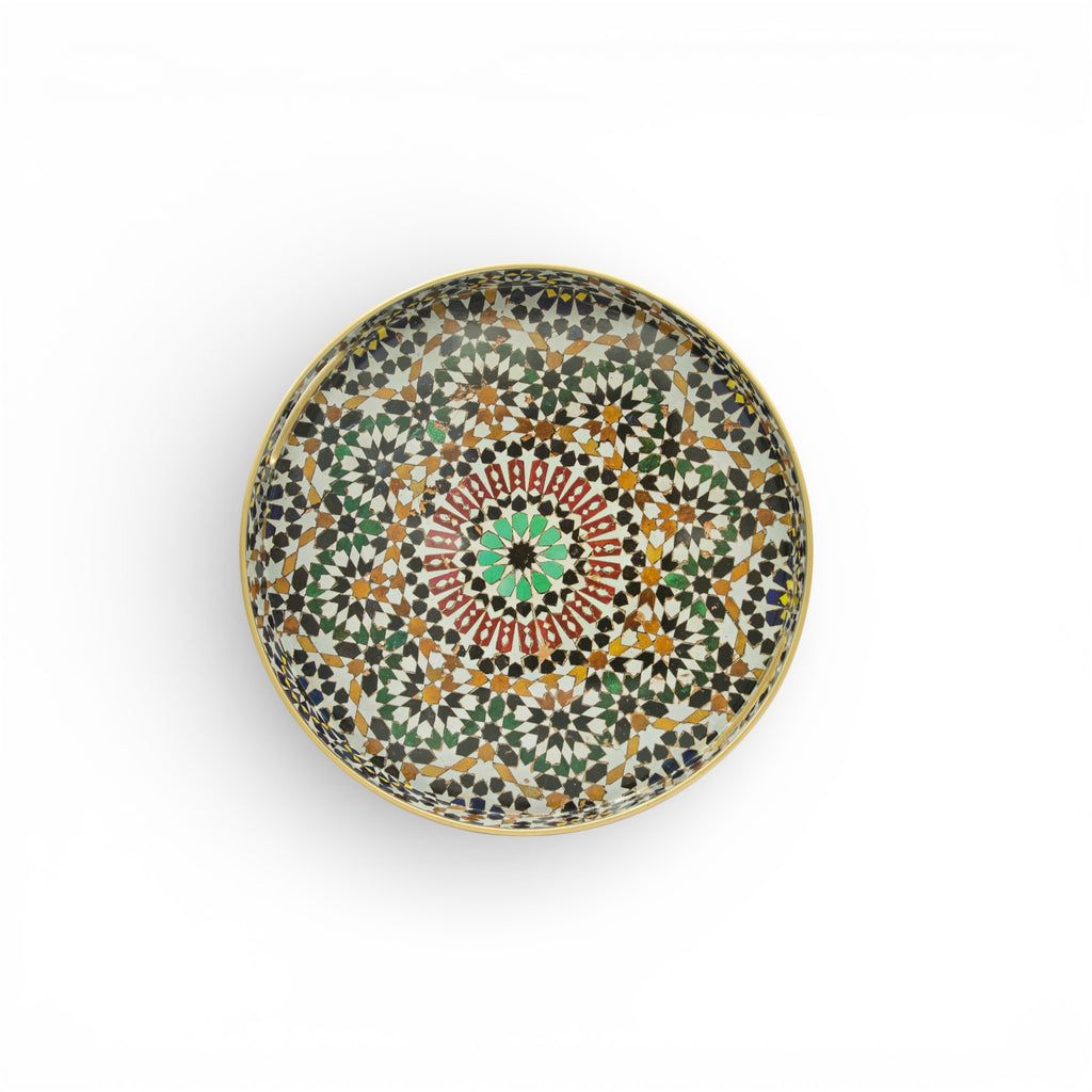 2pc Round Wooden Moroccan Design Serving Tray For Ramadan & Eid
