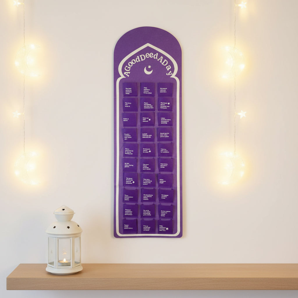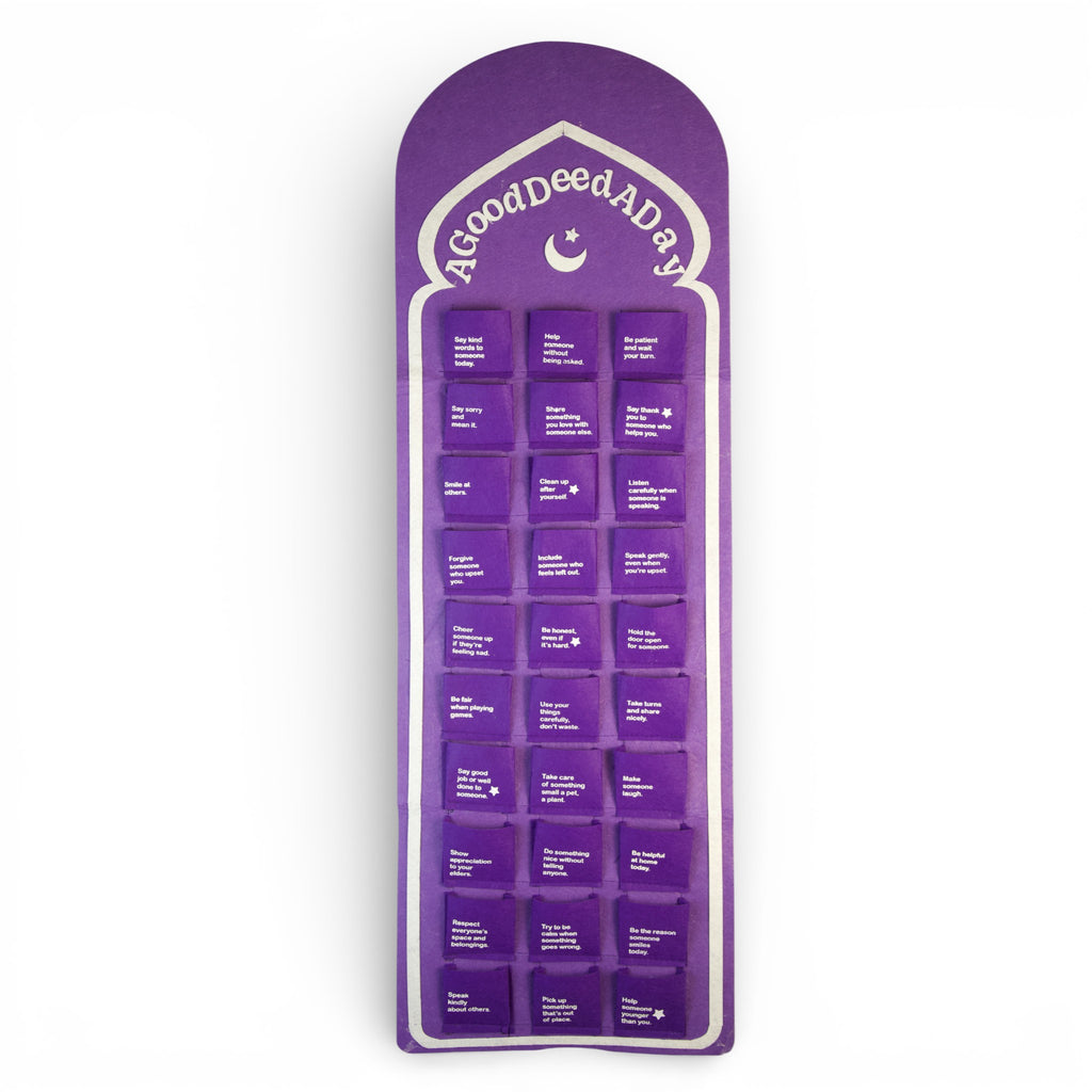 'A Good Deed A Day' Purple Pocket Felt Ramadan Advent Calendar With Wooden Rod
