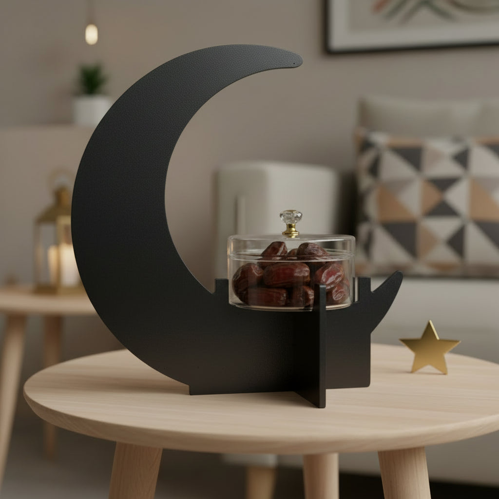 Black Crescent Moon Tabletop Decor Stand with Lid Bowl