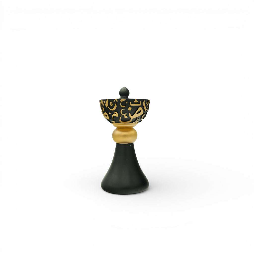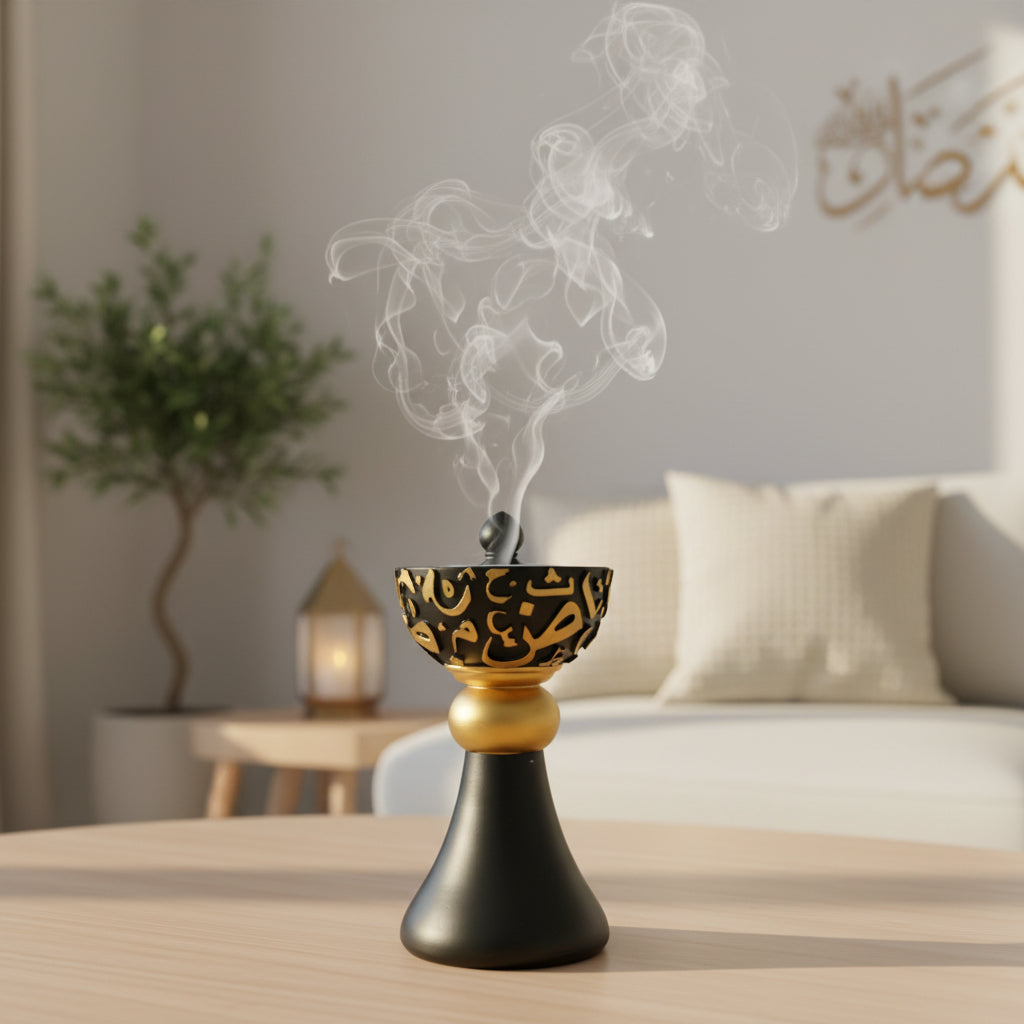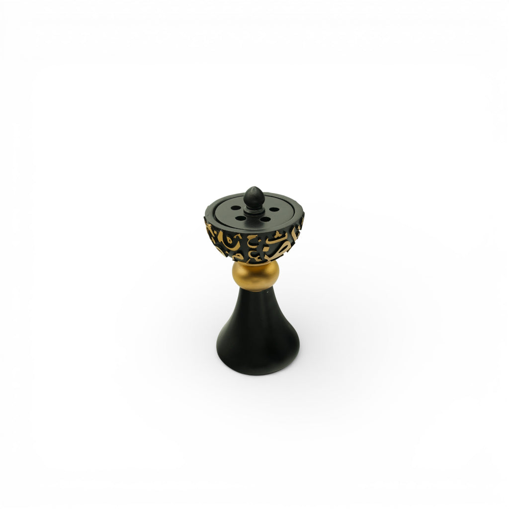 Black & Gold Arabic Bakhoor Burner with Calligraphy Design