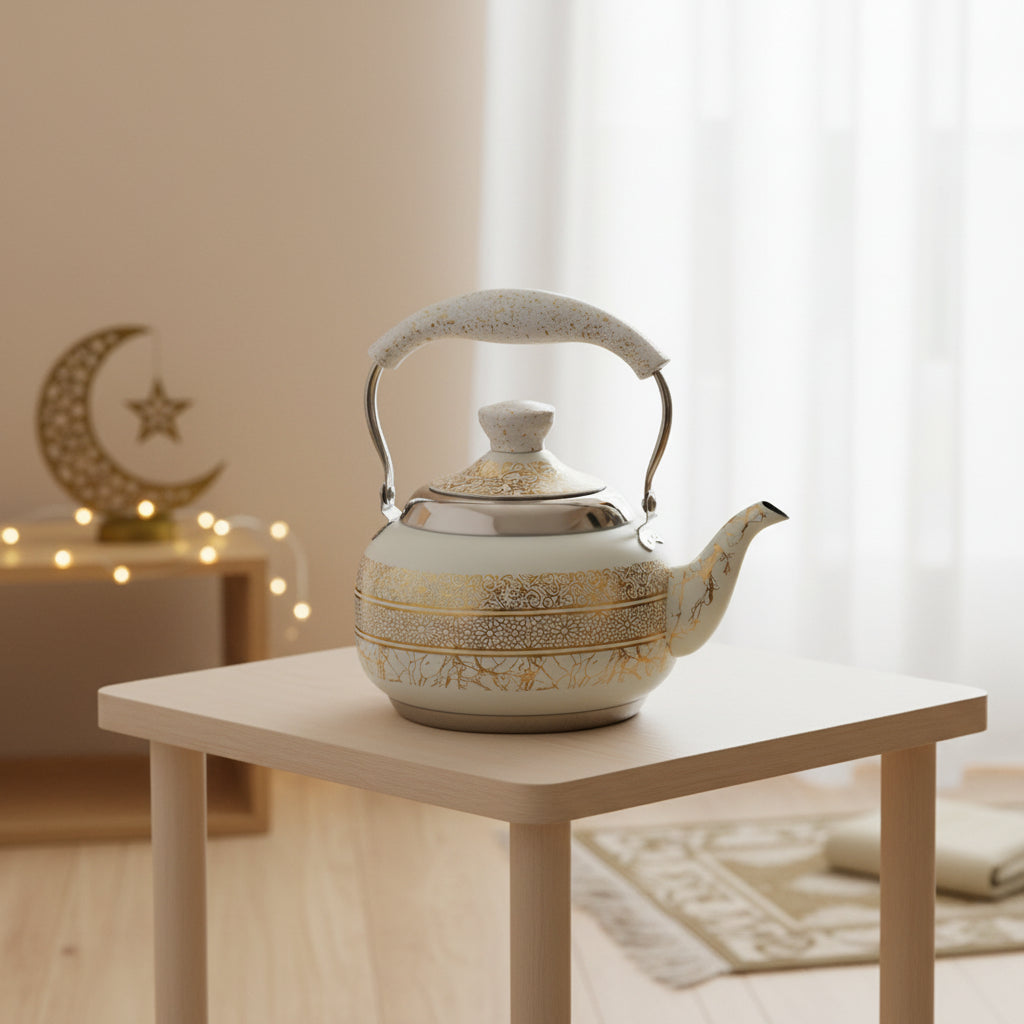 Black Gold & White Gold Round Calligraphy Marble Print Teapot -2LBlack Gold & White Gold Round Calligraphy Marble Print Teapot -2L
