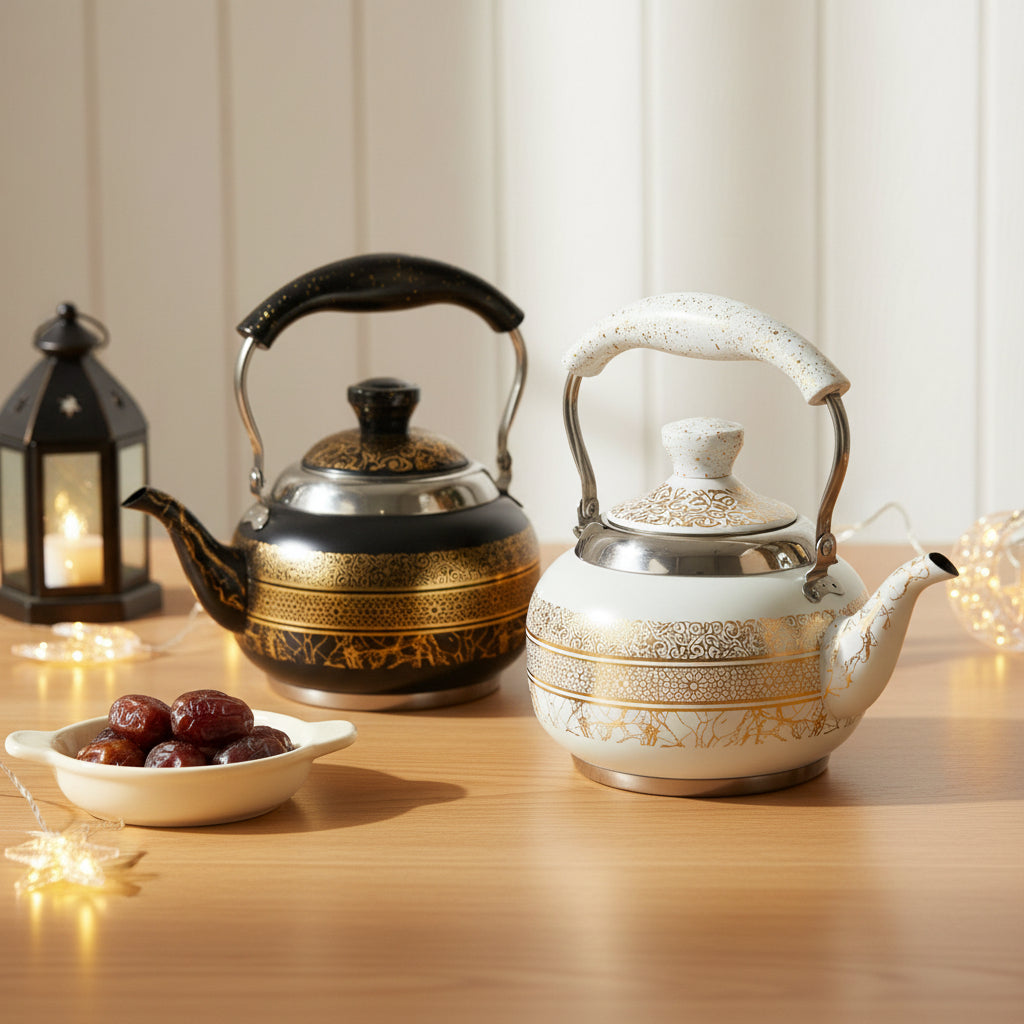Black Gold & White Gold Round Calligraphy Marble Print Teapot -2L