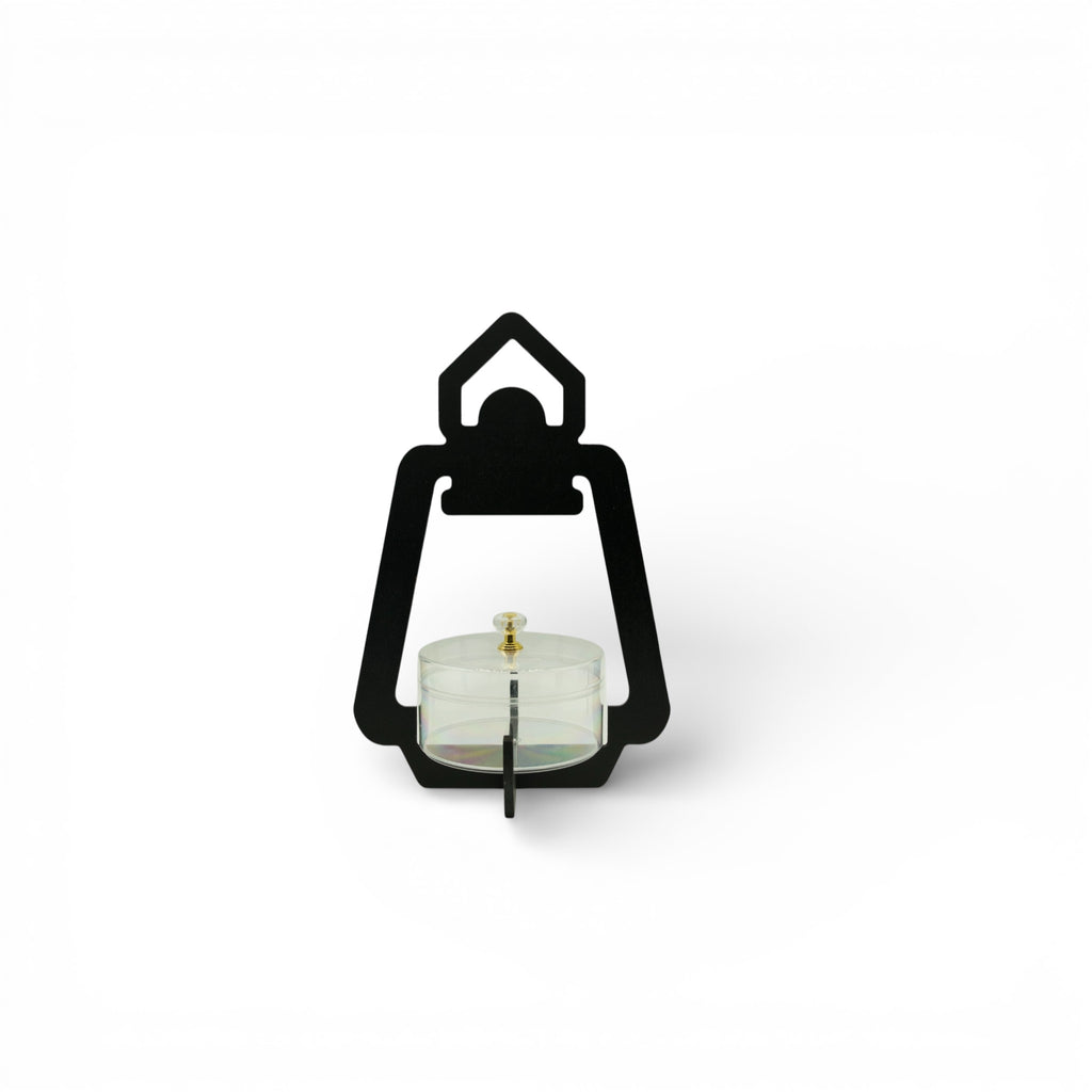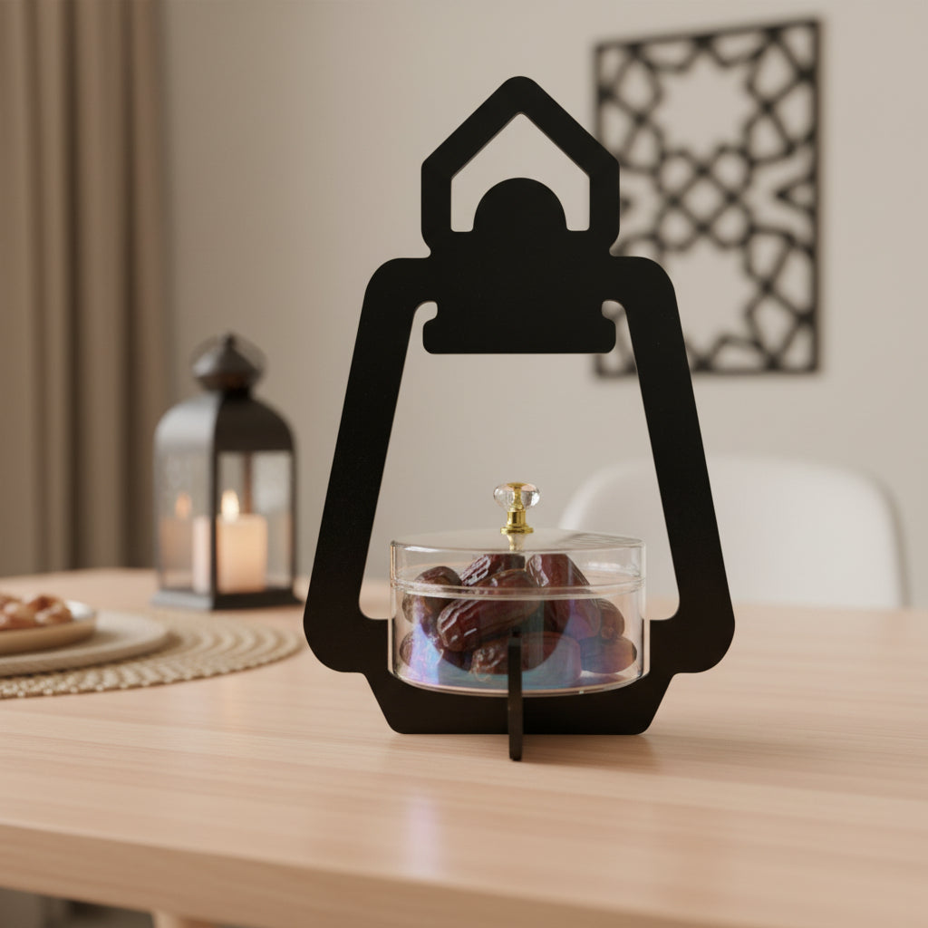 Black Minaret Tabletop Decor Stand with Lid Bowl