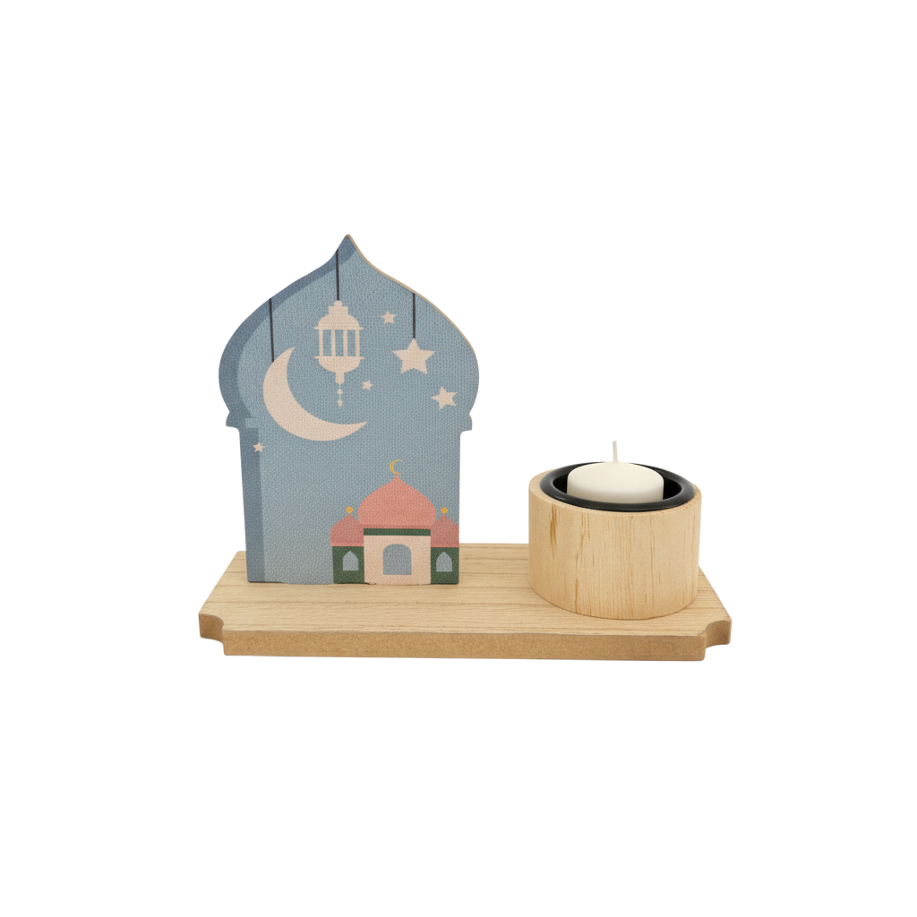 Blue Minaret Wooden Stand With Candle/Bakhoor Stand For Eid & Ramadan