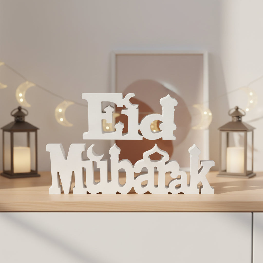White Rustic "Eid Mubarak" Decoration Letters / Table Centre Piece