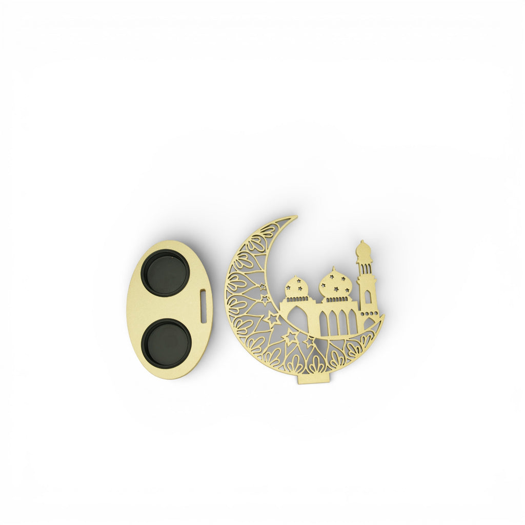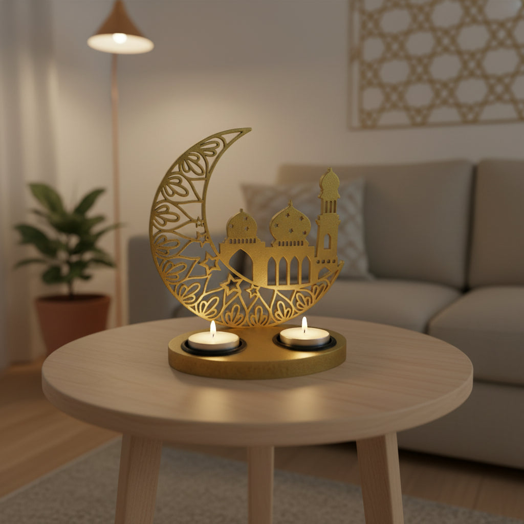 Crescent Moon Mosque Silhouette Wooden Candle Stand