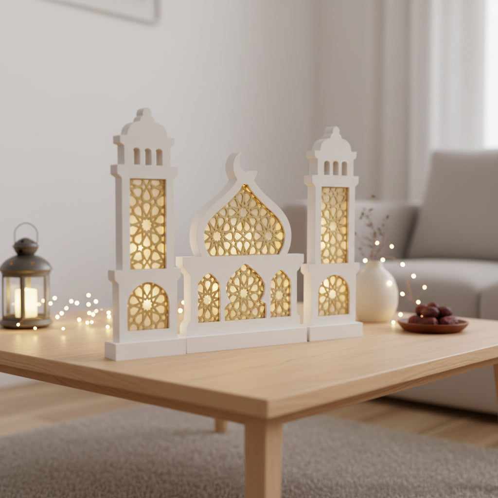 Extra Large Solid Wood Mosque LED Stand For Ramadan & Eid - White