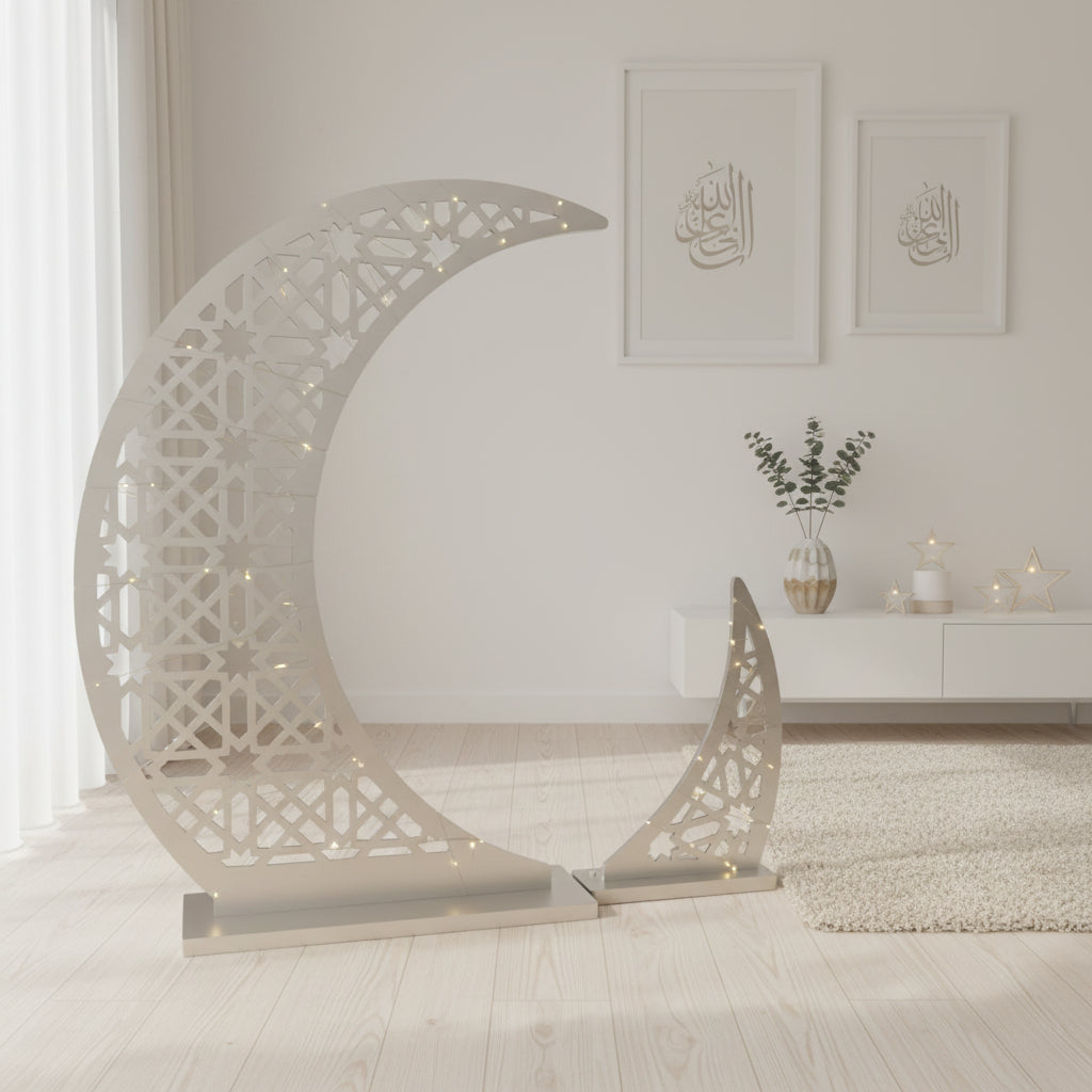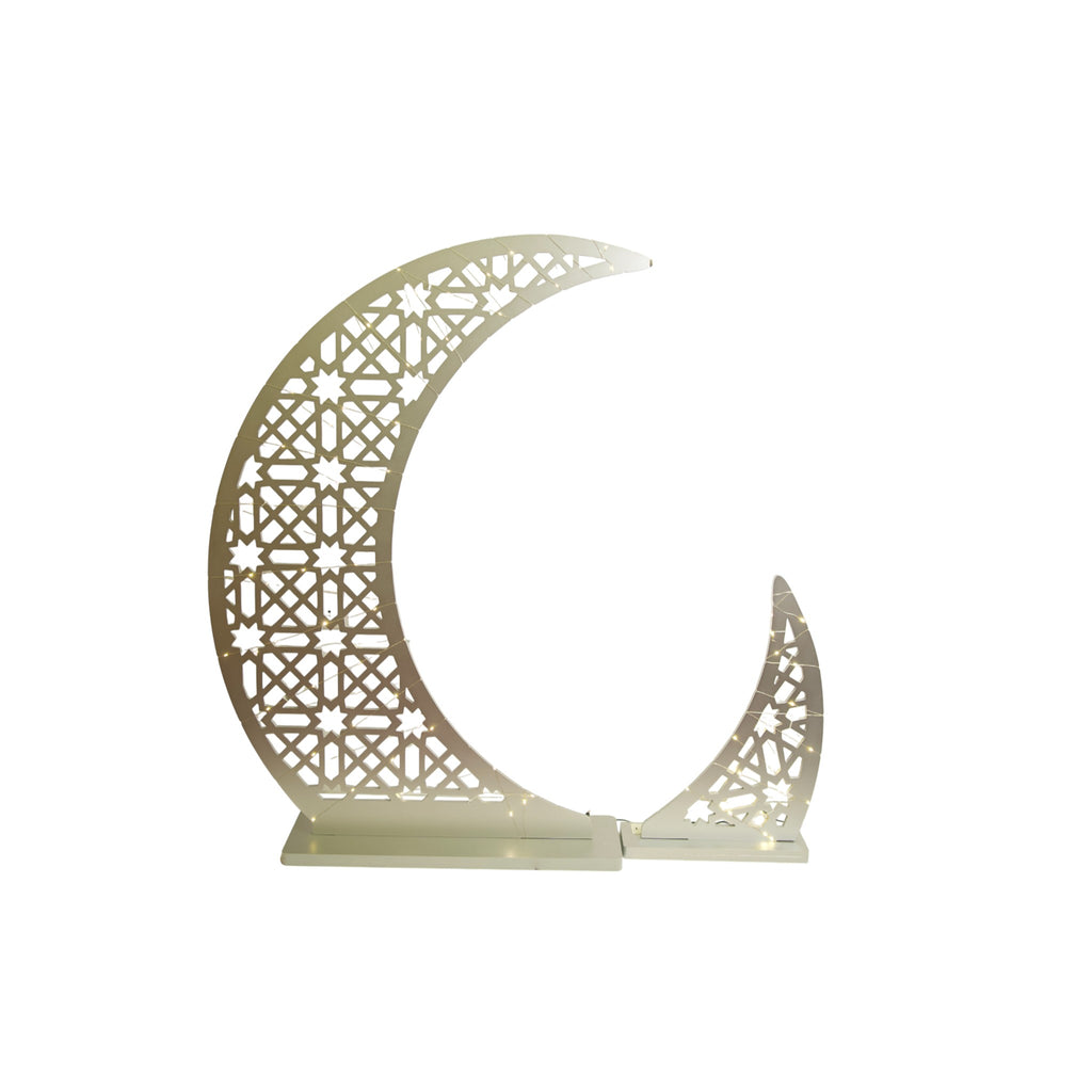 Giant Gold 2-Part Crescent Moon With Star Fairy Lights Wooden Stand