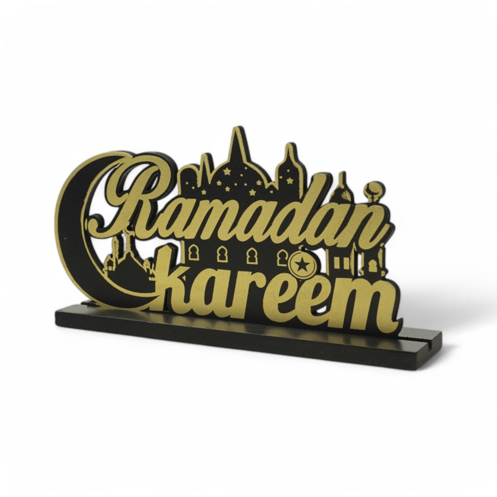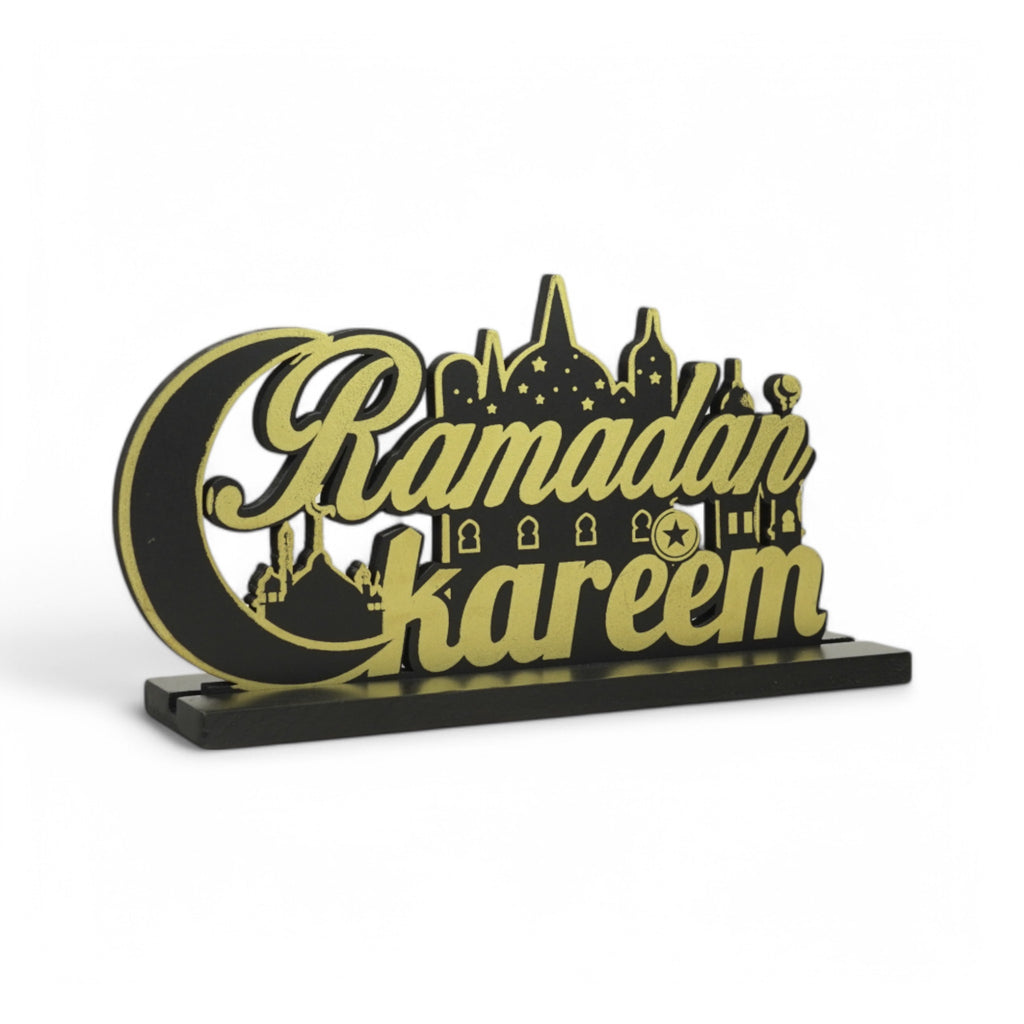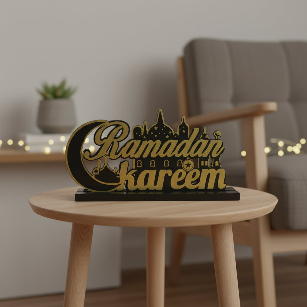 Gold "Ramadan Kareem" Tabletop Decor with Crescent and Mosque Design