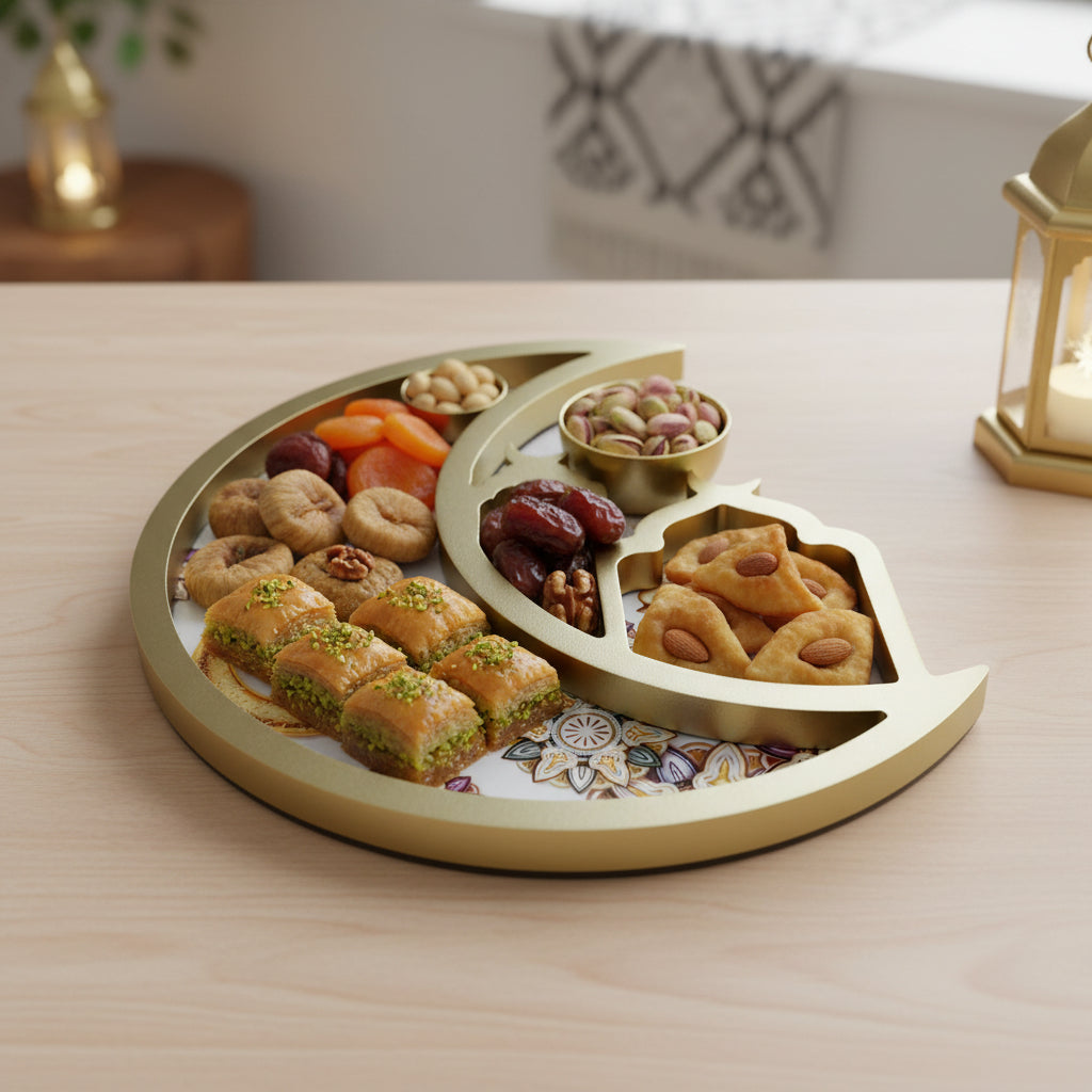 GOLD Wooden Crescent Moon Minaret Food Serving Tray (757-22)