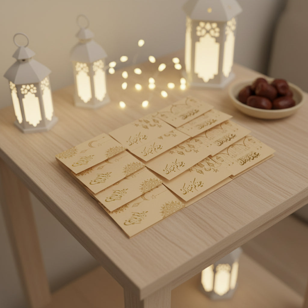 Manila with Gold Emboss Mini Eid Cards Pack of 12