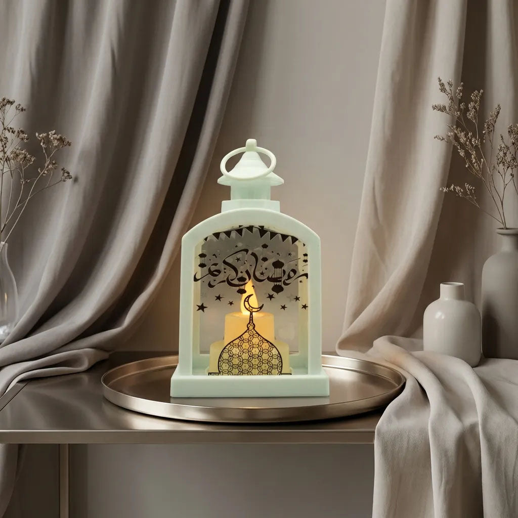 Matt White Lantern With Tea Light رمضان كريم For Ramadan & Eid