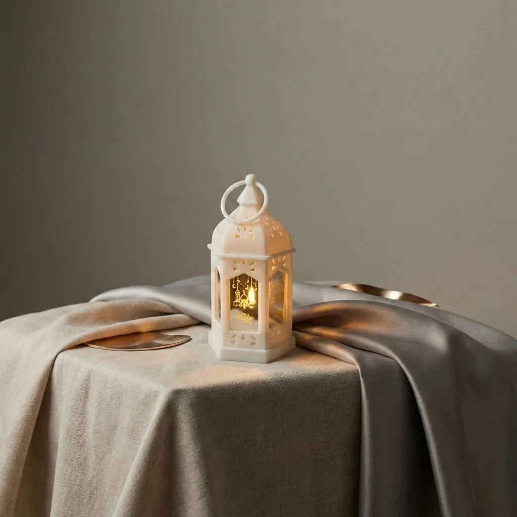 Matt White Mirror Glass Mini Plastic Lanterns For Ramadan & Eid