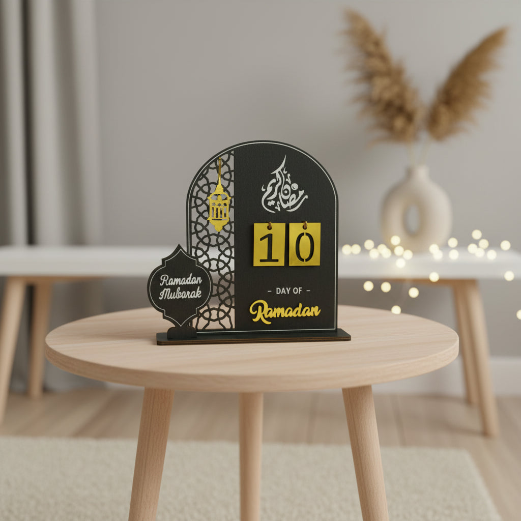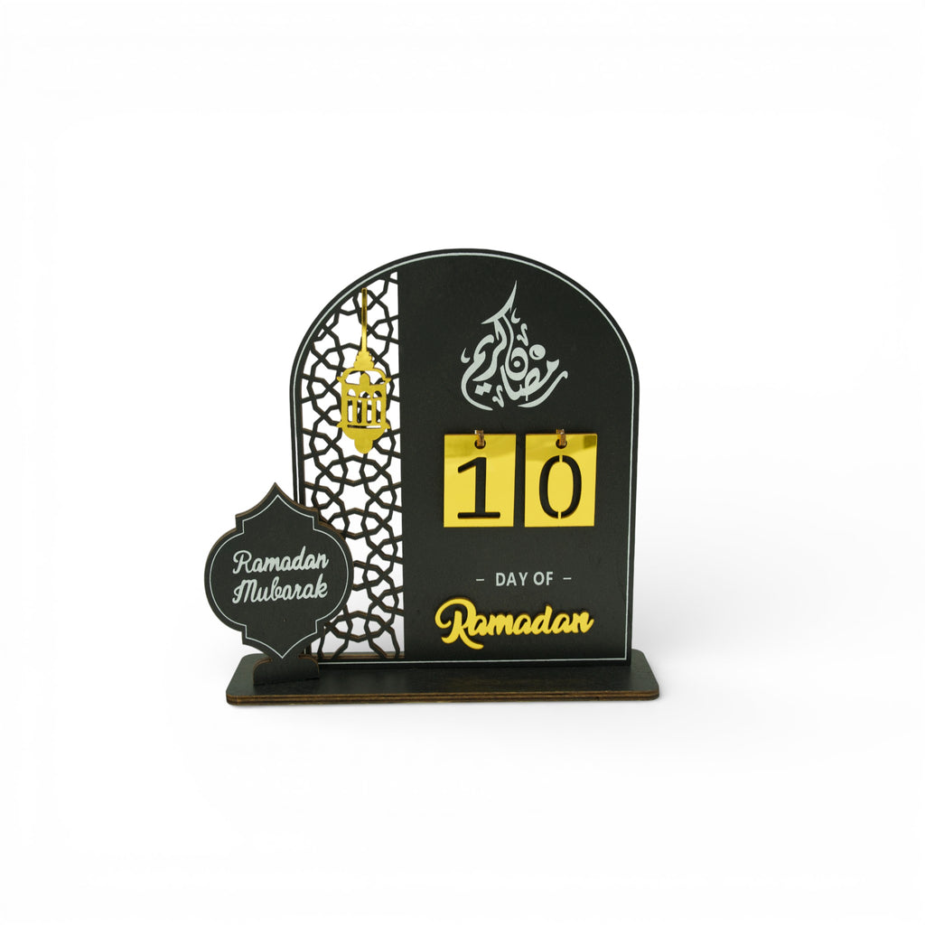 Metallic Black & Gold Arch Shape Wooden Ramadan Countdown Calendar