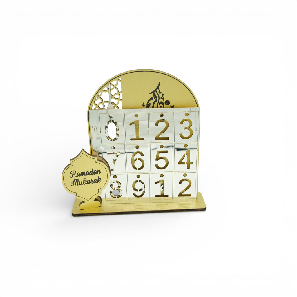 Metallic Gold Arch Shape Wooden Ramadan Countdown Calendar