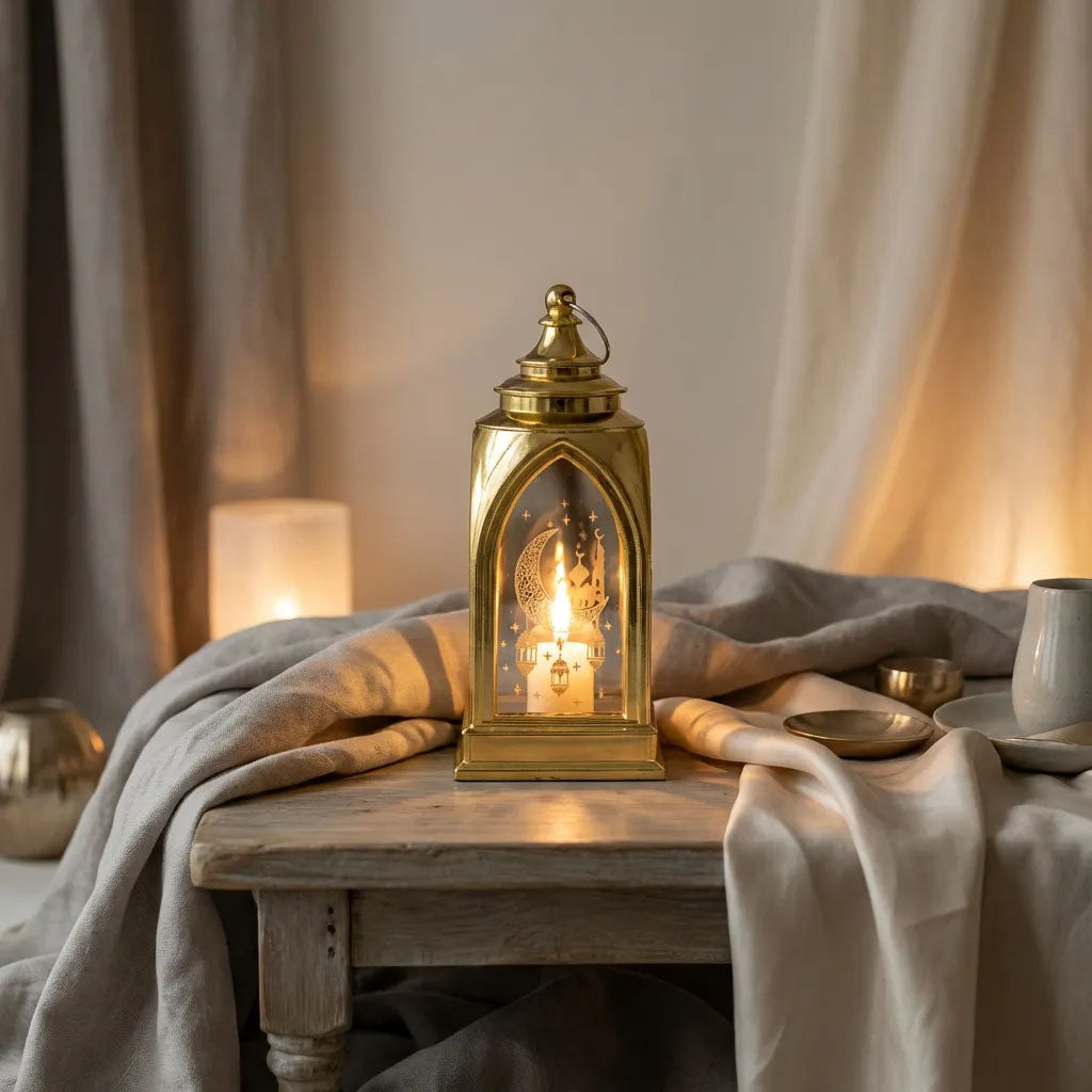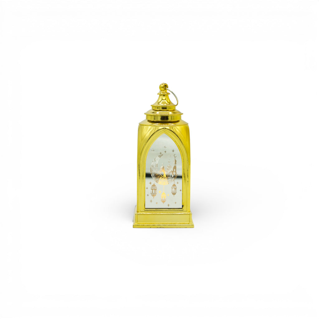 Mini Arched Mirrored Glass Shiny Gold LED Lantern For Ramadan & Eid