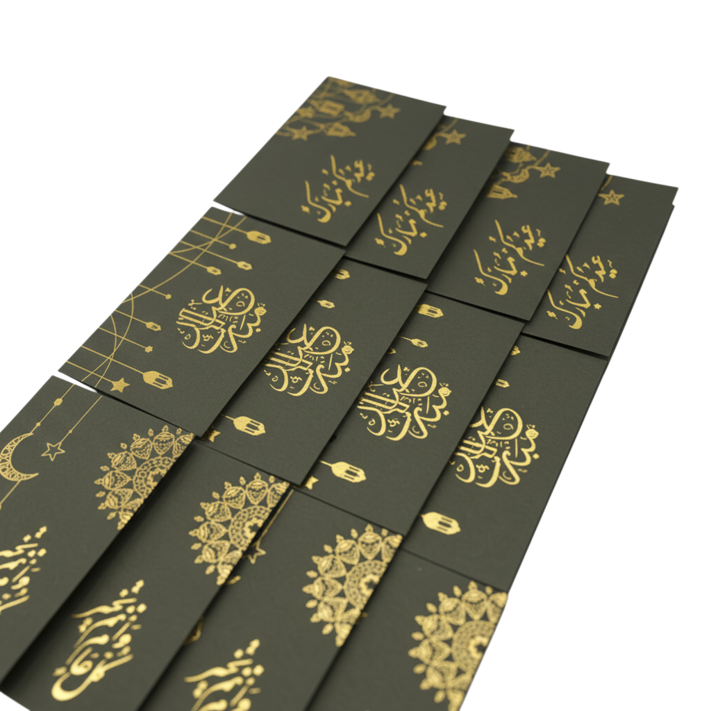 Black with Gold Emboss Mini Eid Cards Pack of 12