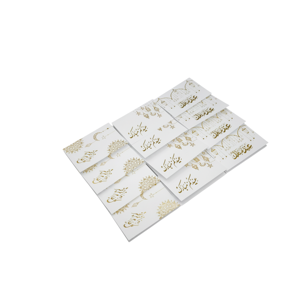 White with Gold Emboss Mini Eid Cards Pack of 12