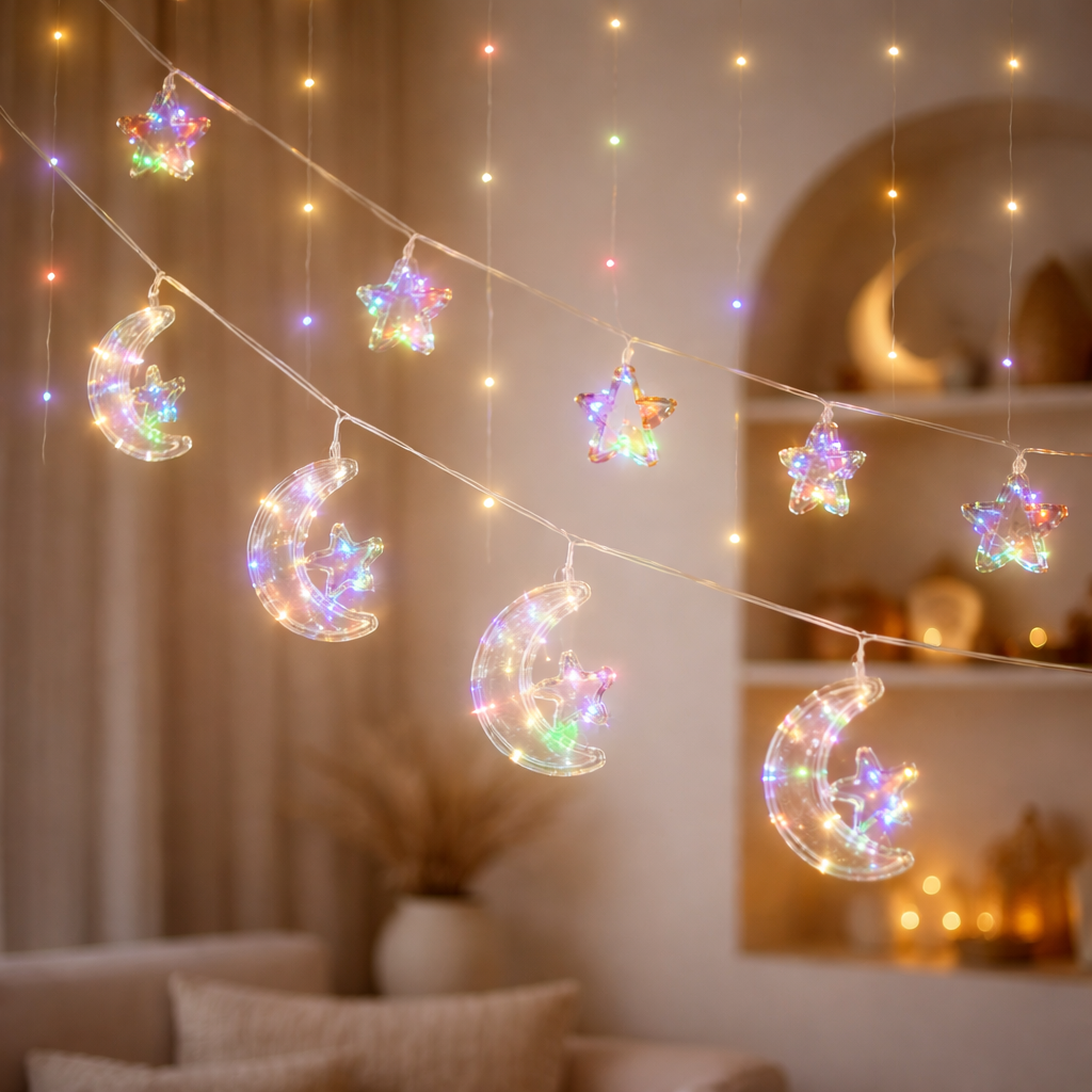 Moon & Star USB-Operated Multi Coloured LED Curtain Lights Garland - 3 Meter