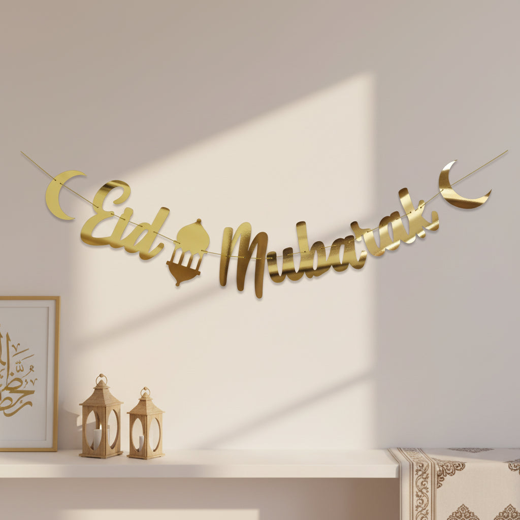Gold 'Eid Mubarak' Moon & Lantern Garland Card Bunting - 2m