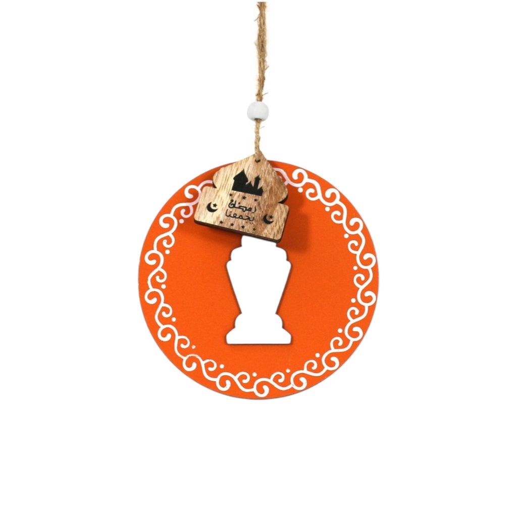 Orange Wooden Hanging Decoration With Lantern Design for Ramadan & Eid