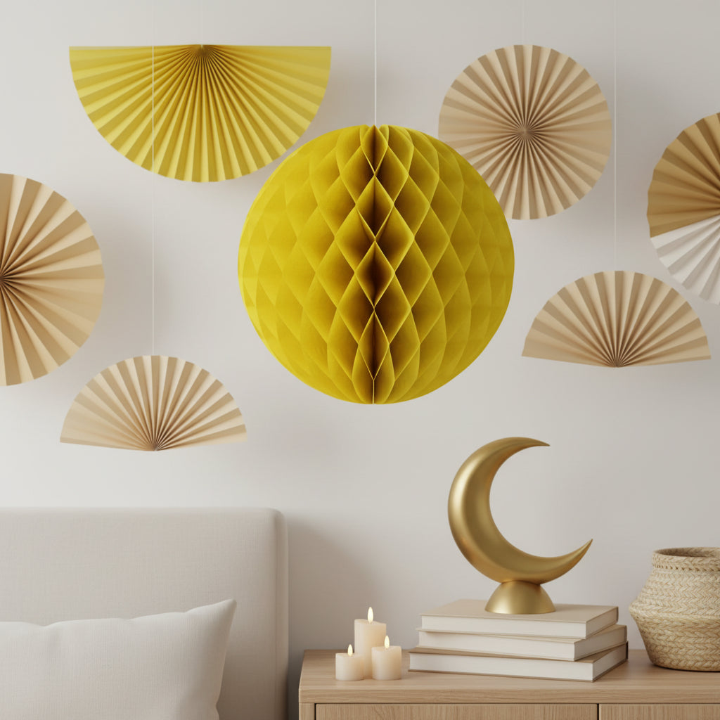 Gold Paper Hanging Honeycomb Diamond Lanterns Eid Party DecorationGold Paper Hanging Honeycomb Diamond Lanterns Eid Party Decoration