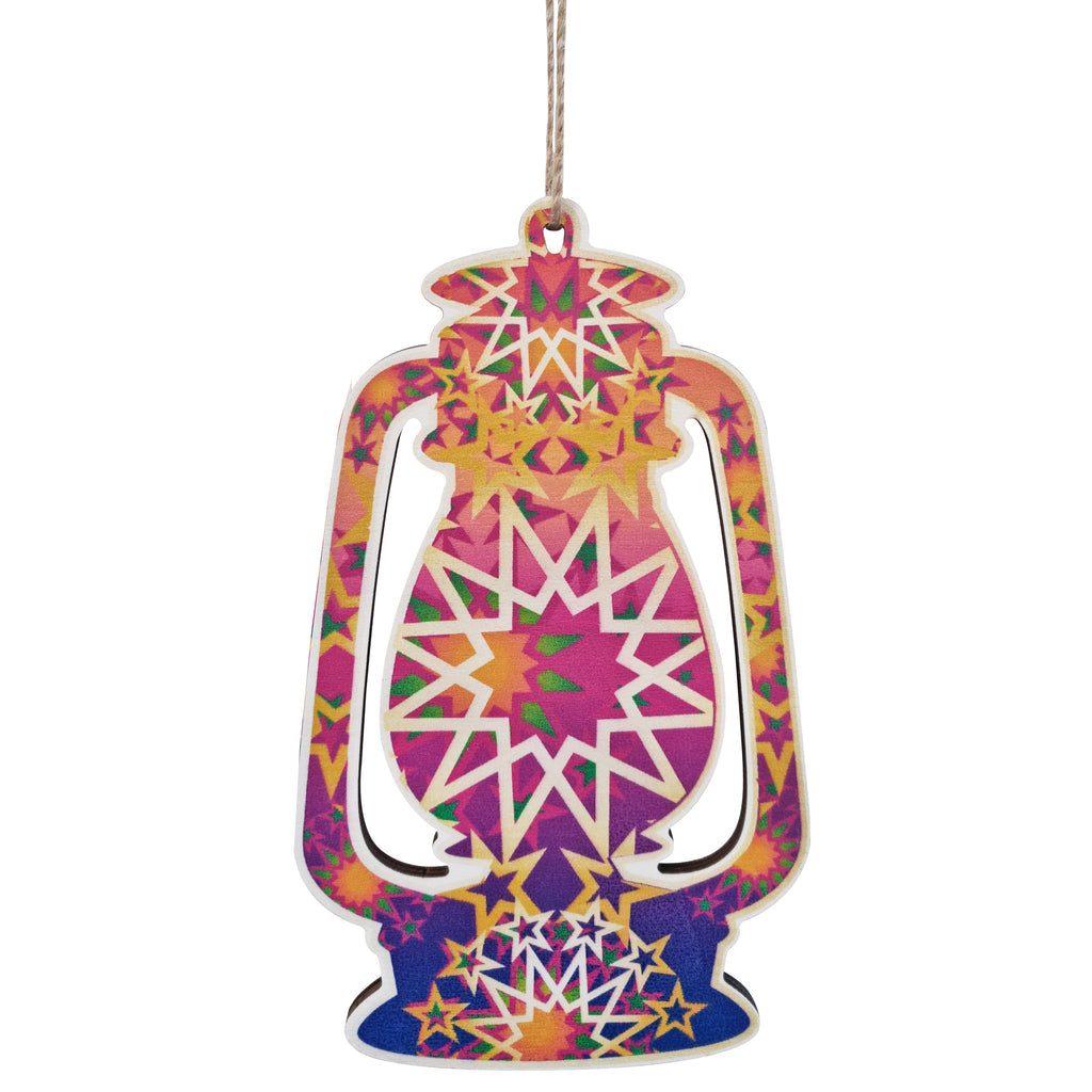 Pink & Purple Star Pattern Wooden Lantern Hanging Decorations