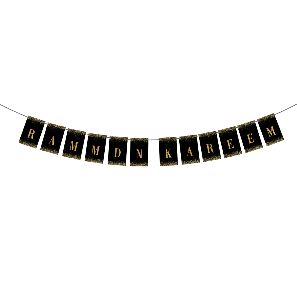Ramadan Kareem Sparkle Black Gold Letter Card Bunting - 2 meters