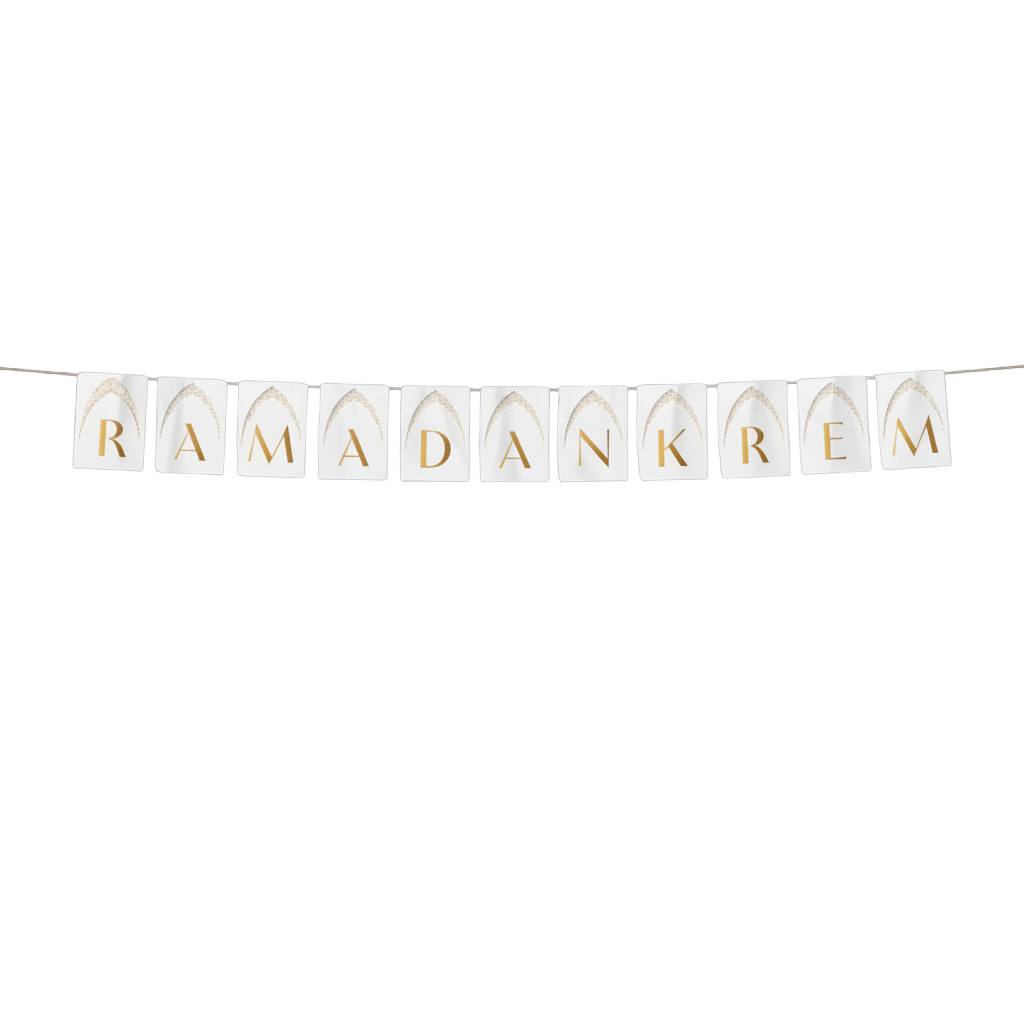 Ramadan Kareem White Arch Gold Letter Card Bunting - 2 meters