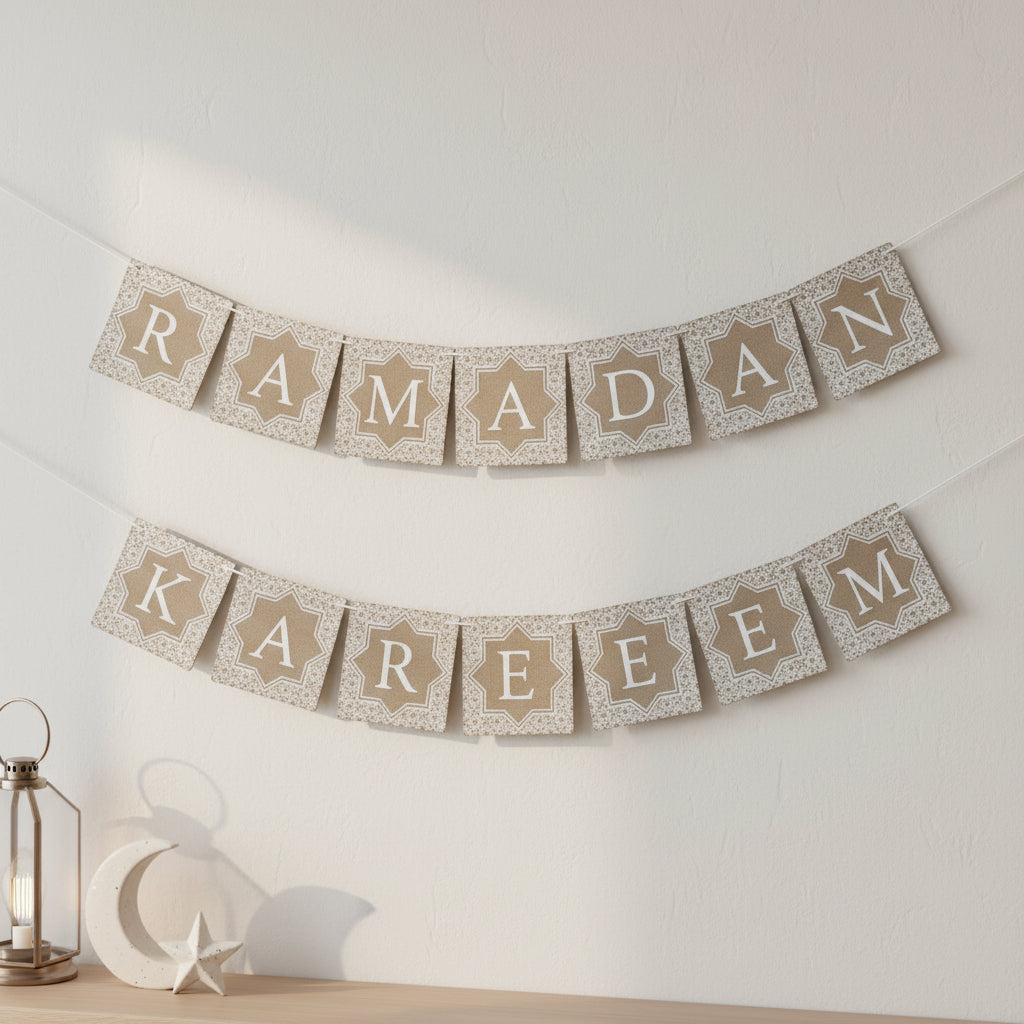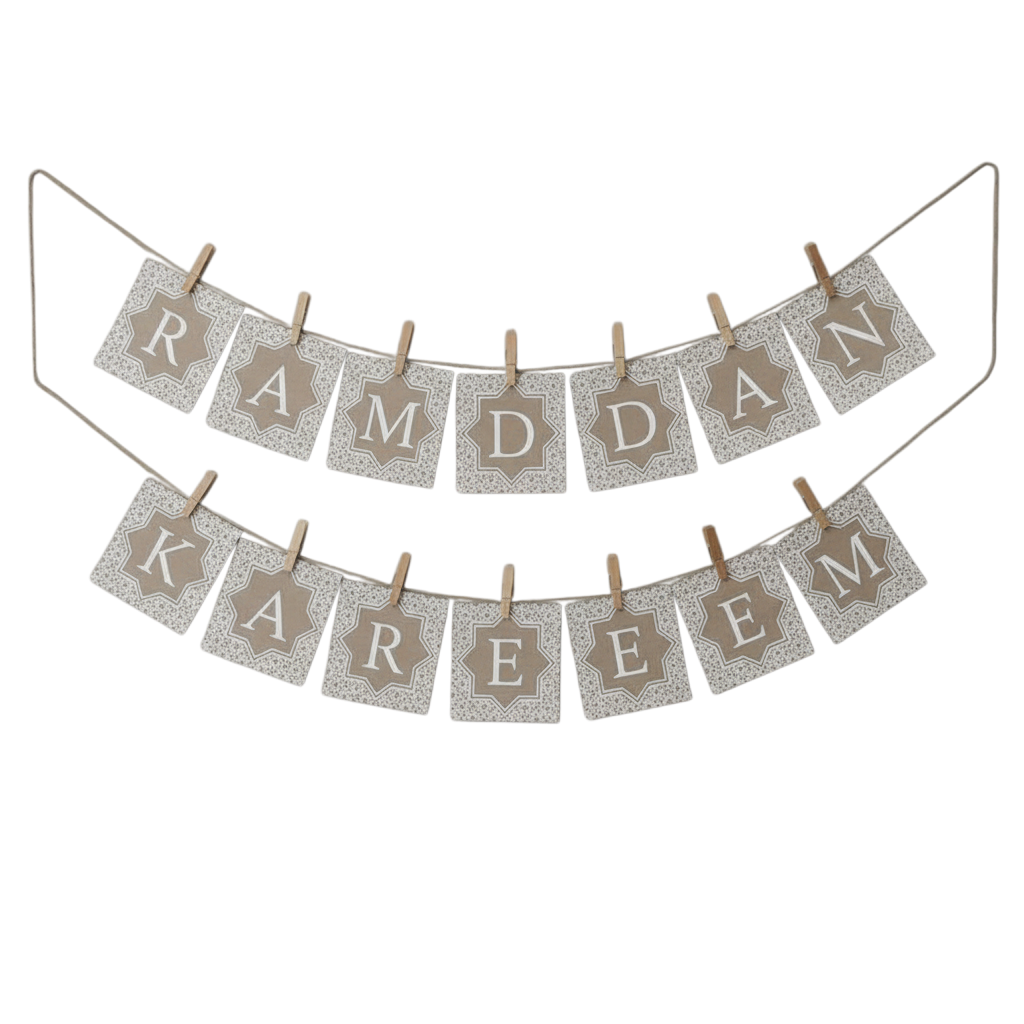 Ramadan Kareem White Ornate Individual Letter Hessian Bunting - 2 meters