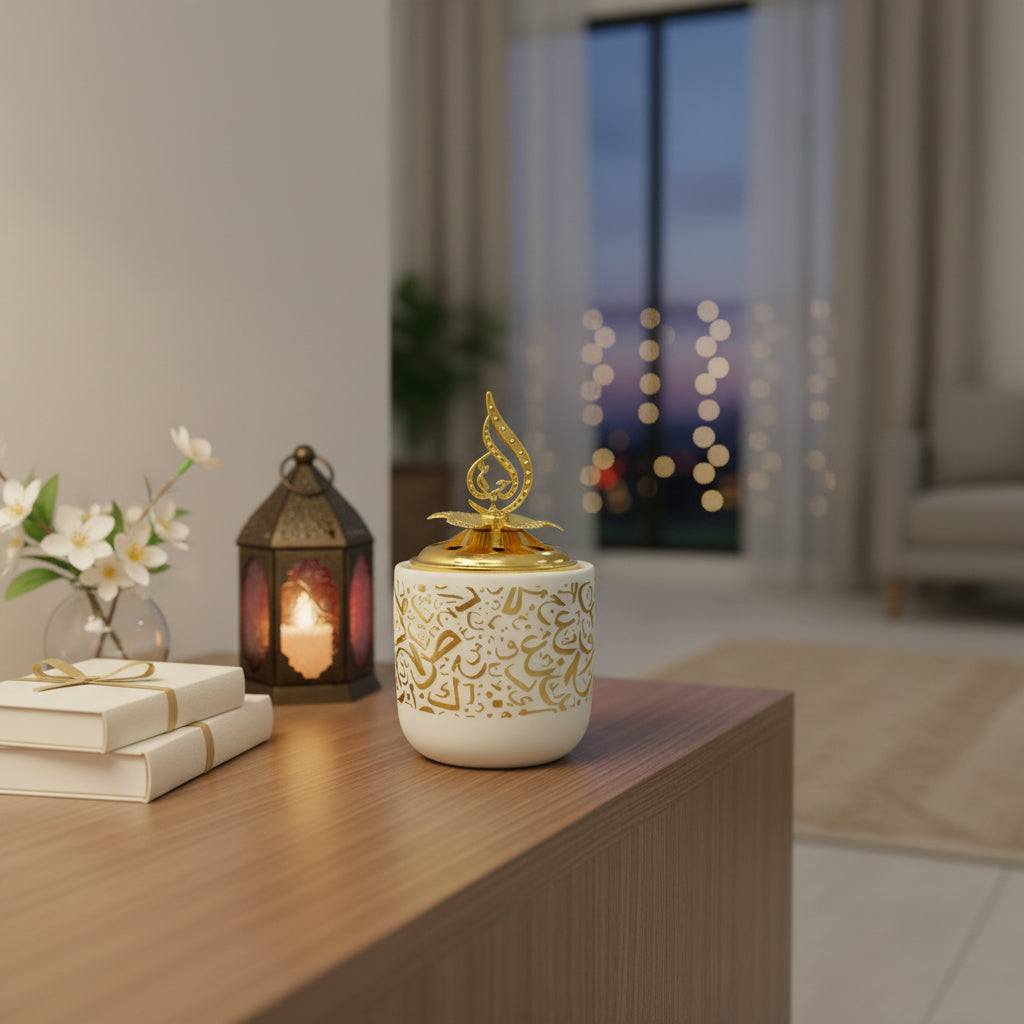 Round Arabic Calligraphy - White Bakhoor Burner