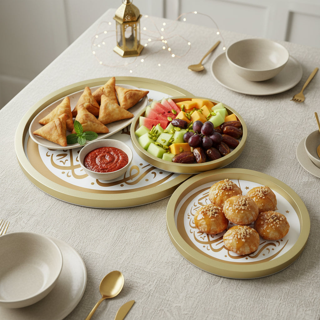 Round Ramadan Kareem Set of 3 Gold Trays (757-32)
