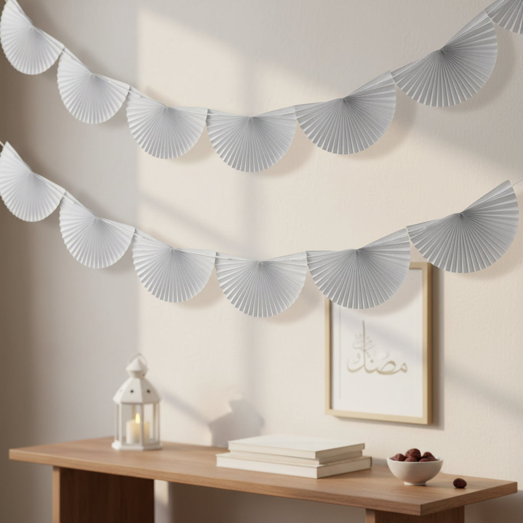 Silver Paper Hanging Half-Fan Garland Eid Party Decoration - 3 Metre