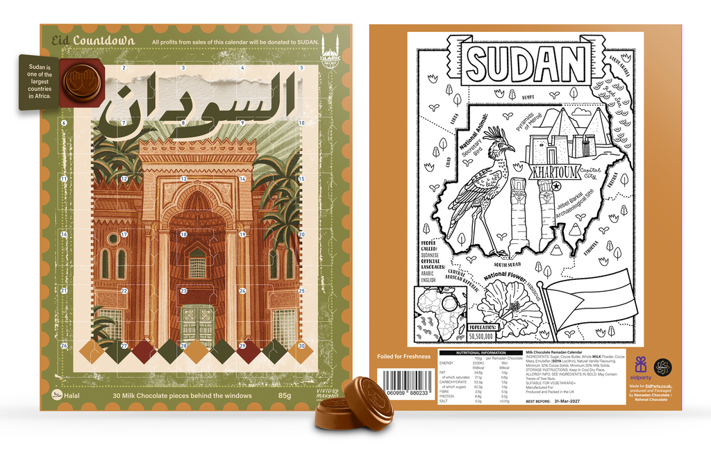 ● Educational Sudan facts behind each window — covering faith, culture, geography, and community life