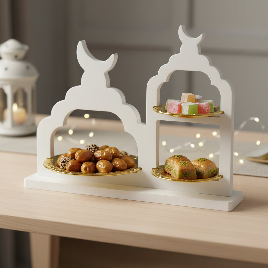 White and Gold Crescent Moon Serving Stand with 3 Tiers (2408250-1)