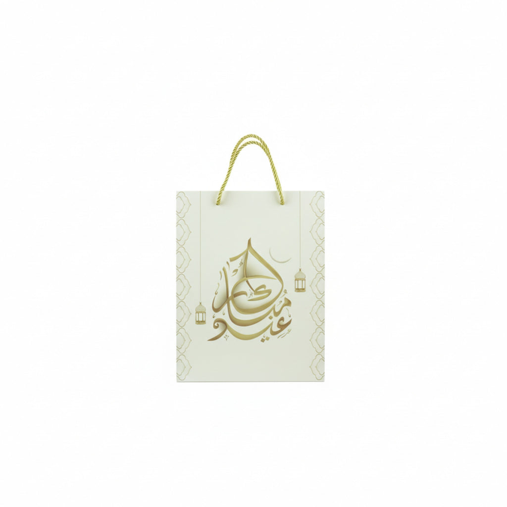 White Eid mubarak Calligraphy with Hanging Lantern Gift Bags(Medium)