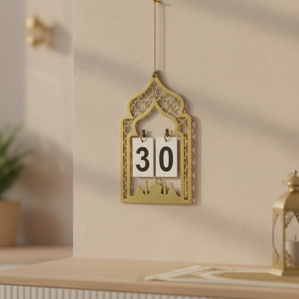 White & Gold 3D Wooden Arch & Mosque Hanging Calendar
