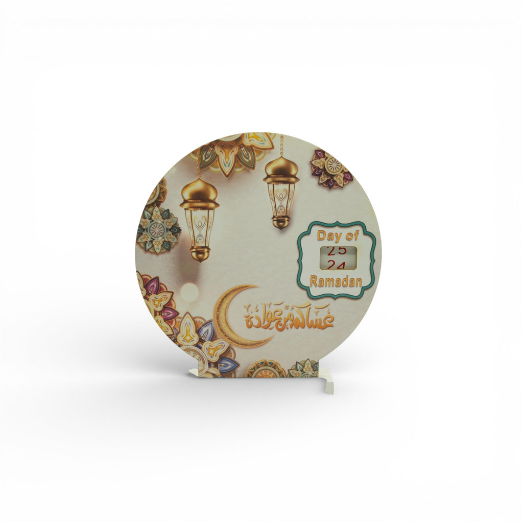 White With Lantern Design Round Shape Wooden Ramadan Countdown Calendar Stand