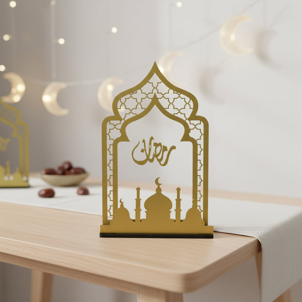Wooden Gold Arch رمضان With Mosque Silhouette Home / Table Decoration for Ramadan & Eid