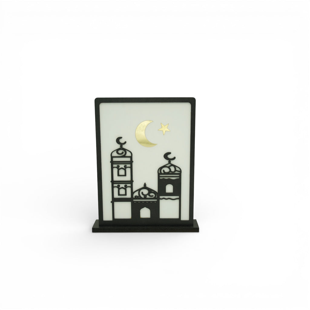Wooden Moon & Mosque Stand Table Centre Decoration For Eid & Ramadan